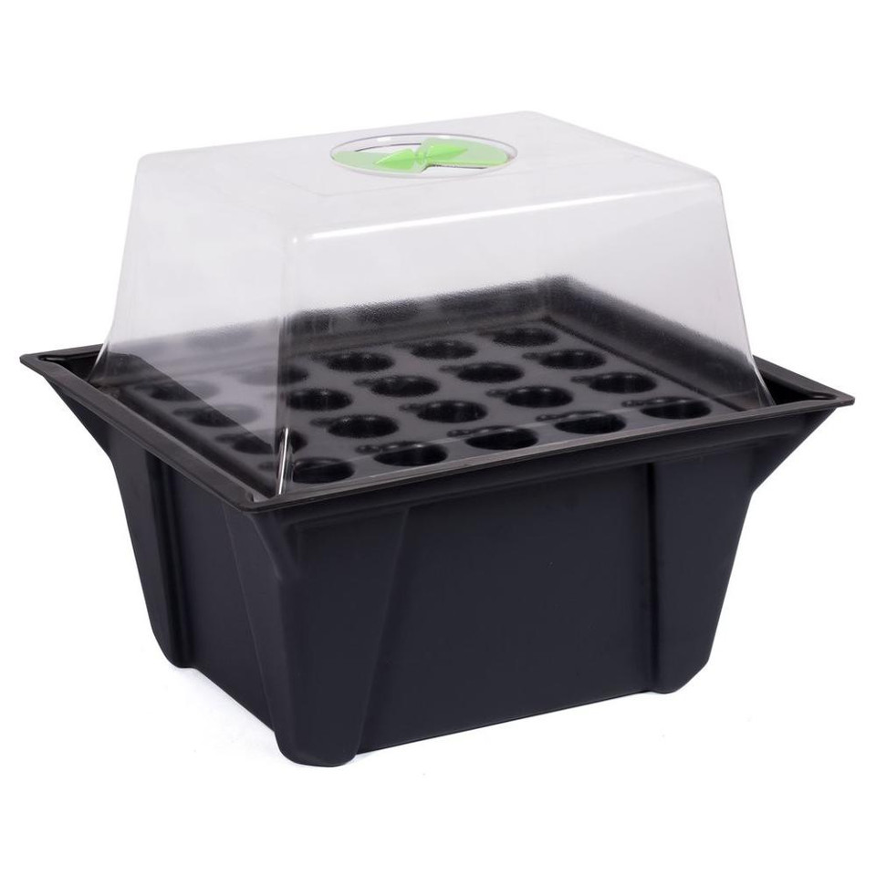 Clone Master – Aeropončni propagator za potaknjence. Nutriculture X-Stream Propagator Clone Master je popoln Cloner / propagator, kateri ustvarja s kisikom bogato okolje, kar spodbuja hitrejši razvoj korenin in višjo stopnjo uspeha. Rastline so pripravljene za presajanje prej kot kdajkoli prej. Vsak Clone Master vključuje kupolo za uravnavanje vlažnosti, kar omogoča pridelovalcem, da mlade rastline rastejo v popolnoma varnem okolju. X-Stream Propagator prši fino meglico v zelo oksigeniranem okolju in to je zasnovano tako, da je gostota meglice optimalna. Vlažnostna kupola ustvarja vlažno okolje za spodbujanje rasti in za zaščito rastlin pred nenadnimi spremembami temperature. Kupola omogoča pridelovalcu zmanjšanje vlažnosti, če in kadarkoli je potrebno. Pumpa, pršilke in vaze so priložene! Robustna konstrukcija.