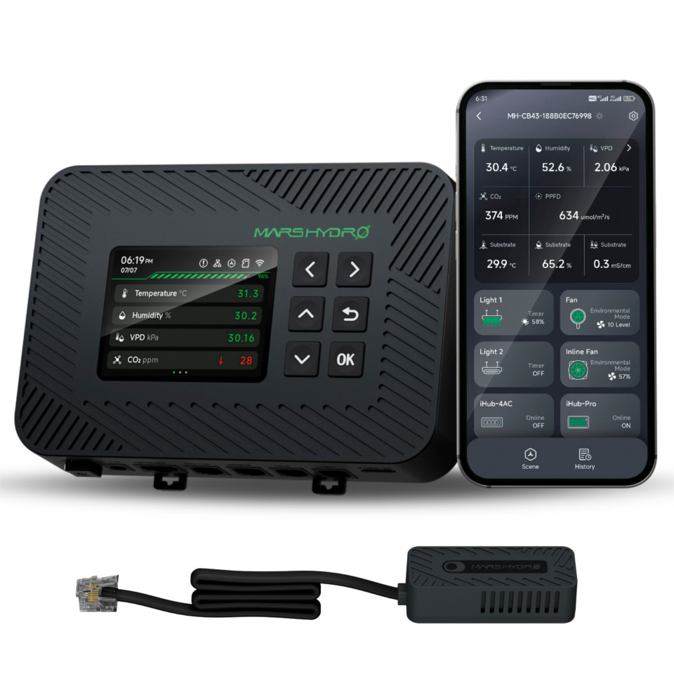 Mars Hydro iControl Smart Grow Room Controller je napreden sistem za popolno avtomatizacijo nadzora vašega grow prostora, ki združuje nadzor nad lučmi, temperaturo, vlago in VPD (Vapor Pressure Deficit) prek Wi-Fi aplikacije. Zasnovan je tako, da optimizira rast rastlin skozi celoten življenski cikel z minimalnim ročnim upravljanjem.