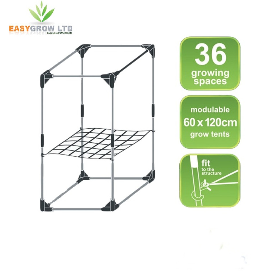 Elastična mehka gumirana mreža je primerna za uporabo v grow boxih. Mreža nudi potrebno podporo rastlinam, da še bolje in lažje uspevajo. Grow Net lahko postavimo horizontalno ali vertrikalno odvisno od tipa ali načina sajenja. Mreža je razstegljiva od 60 x 60 do 120 x 120 cm in ima 36 razdelkov.