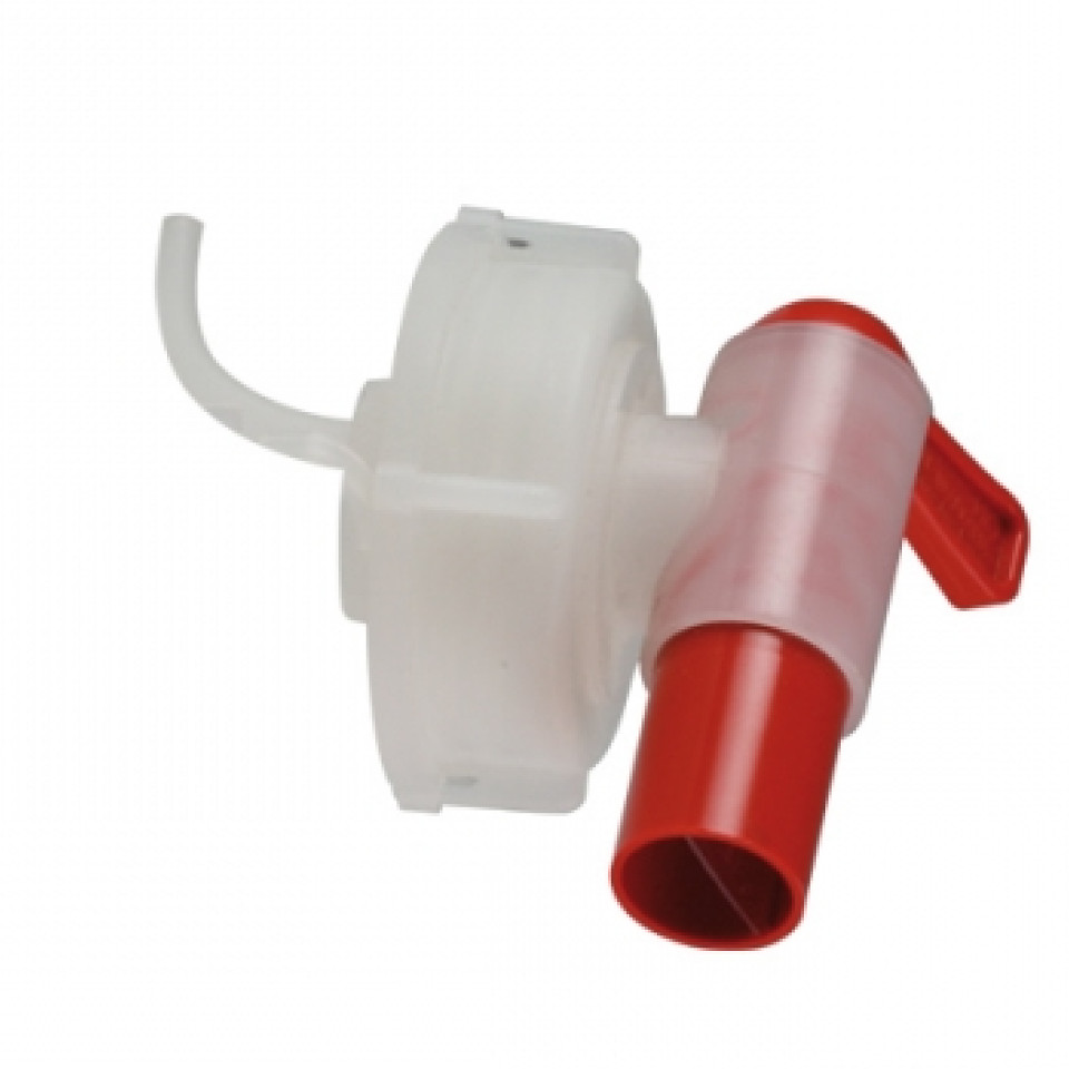 Z majhno rdečo ročico se odpre ali zapre pretok in natačno dozira gnojila iz plastičnih kanistrov.