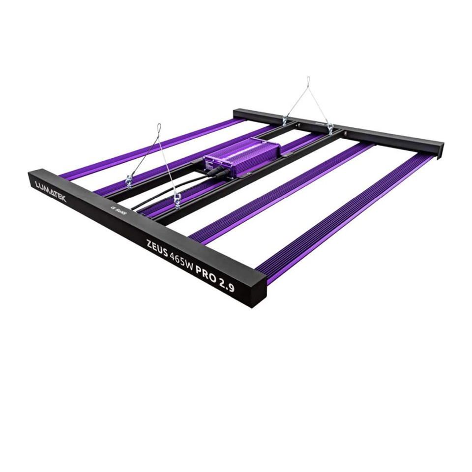 Zeus 465W Pro 2.9 linearna več-palična svetlobna struktura je sestavljena iz petih LED palic s polnim svetlobnim spektrom. Proizvaja zelo visoke ravni fotosintetičnega fotonskega toka (PPF); 1353 µmol/s in zelo visoko fotonsko učinkovitostjo (PPE) do 2,9 µmol/J.