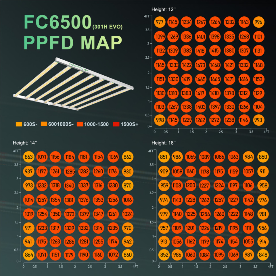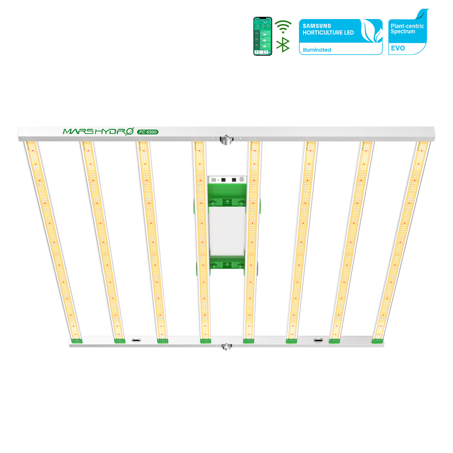 Serija Mars Hydro FC, nameščena z najbolje prodajanimi diodami Samsung LM301H EVO, izdelana po vodilnih zasnovah v industriji in projektnih raziskavah, zagotavlja na trgu vodilno učinkovitost 2,85 umol/j in 30 % višjo povprečno PPFD 1000 umol/㎡/s, obljublja velik izkoristek 3 gramov na vat in povečanje proizvodnje za 50 % v primerjavi s starimi lučmi Blurple in HPS. Serija FC je najboljša linija luči Mars Hydro LED za rast.