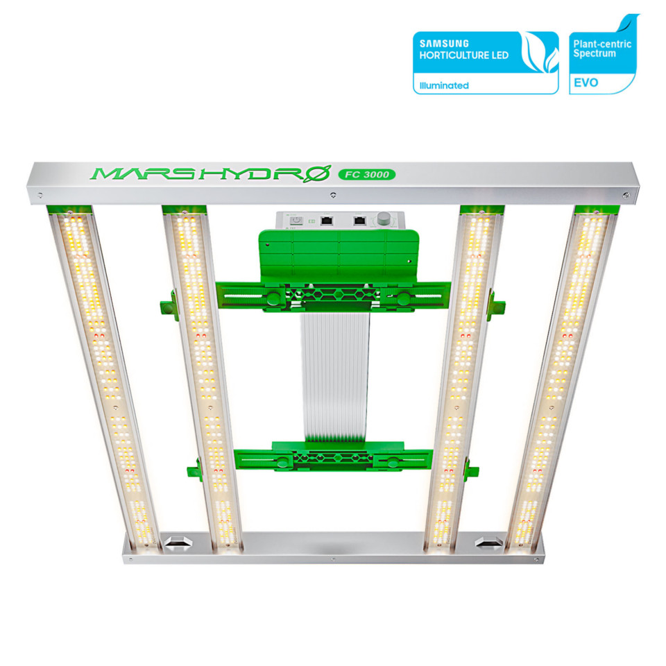 Serija Mars Hydro FC, nameščena z najbolje prodajanimi diodami Samsung LM301H EVO, izdelana po vodilnih zasnovah v industriji in projektnih raziskavah, zagotavlja na trgu vodilno učinkovitost 2,85 umol/j in 30 % višjo povprečno PPFD 1000 umol/㎡/s, obljublja velik izkoristek 3 gramov na vat in povečanje proizvodnje za 50 % v primerjavi s starimi lučmi Blurple in HPS. Serija FC je najboljša linija luči Mars Hydro LED za rast.