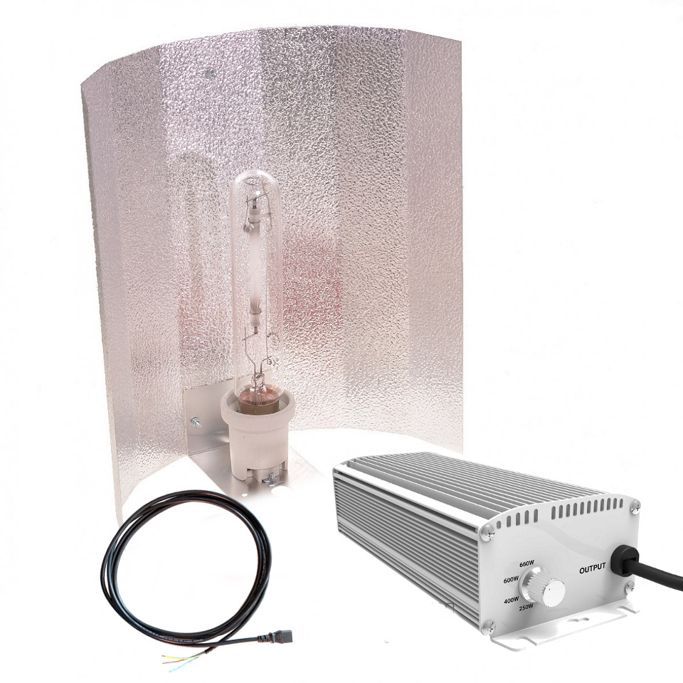 - Reflektor pimeren za HPS in MH žarnice. Vijaki in nosilec so priloženi! Primeren je za 250 W, 400 W, 600 W in 1000 W sijalke. Reflektor je namenjen za sijalke z visoko jakostjo LASTNOSTI: Dimenzije = 500 mm x 400 mm, sestava = iz aluminijaste Stucco pločevine, okovje = E40, debelina pločevine = 0.6 mm, teža = 65 g